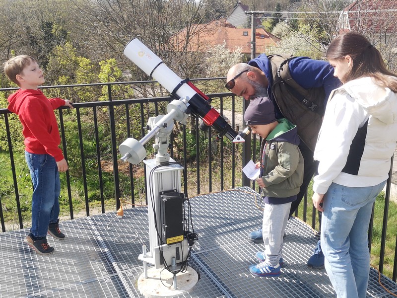 | – Január 14-én a tatai Bláthy Ottó Kollégium diákjait fogadtuk. – Január 23-án a kömlődi Hegyháti Alajos Tagintézmény diákjait fogadtuk. – Január 24-én Csillagászati jelenségek 2025-ben címmel Juhász András tartott előadást. – Február 6-án a tatai Bartók Óvoda gyermekeit fogadtuk. – Február 13-án a Magyary Zoltán Népfőiskolai Társaság tagjait fogadtuk. – Március 4-én a kömlődi Hegyháti Alajos Tagintézmény diákjait fogadtuk. – Március 5-én a Nyugdíjas Igazgatók Közössége tagjait fogadtuk. – Március 14-én Bevezetés a rádióhullámok világába címel Nagy István tartott előadást. – Március 28-án a tatabányai Móra Ferenc Általános iskola diákjait fogadtuk. – Április 4-én a Kuny Domokos Múzeummal közösen rendeztük meg a Földrajz Éjszakáját. – Április 12-én az Űrhajózás Világnapján változatos programokkal családi napra hívtuk a kicsiket, a nagyokat és szüleiket. – Április 14-én a Vértesszőlősi Általános Iskola diákjait fogadtuk. – Április 16-án a tatai Jázmin utcai Általános Iskola diákjait fogadtuk. – Május 12-én a tatai Magyar Máltai Szeretetszolgálat Idősek Klubja tagjait fogadtuk. – Május 17-én a budapesti Ady Endre Gimnázium diákjait fogadtuk. – Június 2-án a tatabányai Gyermekkert Óvoda gyermekeit fogadtuk. – Június 5-én az Ifjú Fizikus Verseny résztvevőit fogadtuk. – Június 17-én ismét a tatai Jázmin utcai Általános Iskola diákjait fogadtuk. – Június 17-én az esztergomi Mindszenty József Általános Iskola diákjait fogadtuk. – Június 19-én a budapesti Radnóti Miklós Gimnázium diákjait fogadtuk. – Június 21-én rendeztük meg a Múzeumok Éjszakáját. – Június 26-án a komáromi Tám-Pont Család- és Gyermekjóléti Intézmény gyermekeit fogadtuk. – Július 9-én a Footour Nyári Tábor gyermekeit fogadtuk. – Július 9-én a budapesti Móra Ferenc Általános iskola diákjait fogadtuk. – Július 17-én a tatai Szociális Alapellátó Intézmény látogatóit fogadtuk. – Július 21-én a Kuny Domokos Múzeum Geotábáran résztvevőit fogadtuk. – Július 24-én a Magyary Zoltán Szakkolégium hallgatóit fogadtuk. – Augusztus 7-én a Komáromi Tám-Pont Családi- és Gyermekjóléti Intézmény gyermekeit fogadtuk. – Augusztus 9-én a Csillagok Alatt c. országos program keretében az Öreg-tó partján tartottunk távcsöves bemutatót. – Augusztus 15-16-án a Perseida meteorok megfigyelésére hívtuk az érdeklődőket. – Augusztus 28-án a Bokodi Nyugdíjas Klub tagjait fogadtuk. – Szeptember 7-én a Holdfogyatkozás megfigyelésére vártuk a látogatókat. – Szeptember 26-án a Kutatók Éjszakáján változatos programot rendeztünk. – Szeptember 29-én a tataányai Bárdos László Gimnázium diákjait fogadtuk. – Október 8-án a nyergesújfalusi Zafféry Károly Szalézi Középiskola diákjait fogadtuk. – Október 16-án a tatai Hajnalcsillag Református Óvoda gyermekeit fogadtuk. – November 7-én A Magyar Tudomány Ünnepe első előadását Kerényi Lilla tartotta Mesék a csillagos égbolton címmel. – November 13-án a tatai Színes Iskola diákjait fogadtuk. – November 14-én A Magyar Tudomány Ünnepe második előadását Hudoba György tartotta Valami baj van az Univerzummal címmel. – November 21-én A Magyar Tudomány Ünnepe harmadik előadását Tóth Zoltán tartotta Igaz, hogy bajban van a klímánk? – A bolygólégkörök működése címmel. – November 28-án A Magyar Tudomány Ünnepe negyedik előadását Dr. Tóth Imre tartotta Kis égitestek gáz- és porkibocsátása címmel. – November 29-én a Tatai Vadlúd Sokadalom alkalmával távcsöveinkkel tartottunk vadlúd és égitest megfigyeléseket. |